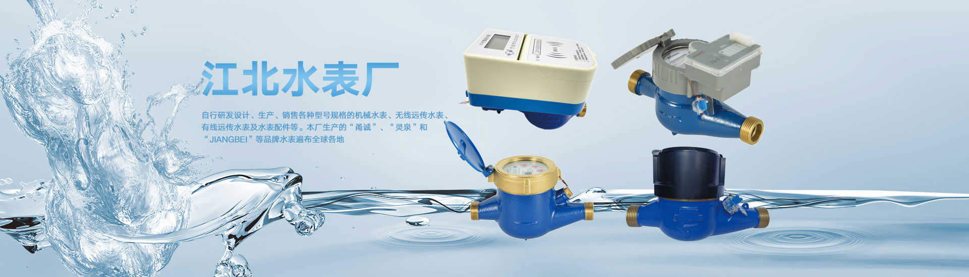 寧波市江北水表廠成立于1995年,自主研發(fā)設(shè)計(jì)、生產(chǎn)和銷售各種型號規(guī)格的機(jī)械水表、智能水表及相關(guān)配件等,生產(chǎn)的“甬誠”、“靈泉”和“JIANGBEI”品牌水表遍布全球各地。本廠地處寧波市江北工業(yè)園區(qū),水、陸、空交通便捷,廠房占地面積達(dá)3600平方米,具有年產(chǎn)100萬只水表及180萬套水表機(jī)芯的生產(chǎn)能力。經(jīng)營的主要產(chǎn)品有:Lora/NB-IoT物聯(lián)網(wǎng)水表、無線遠(yuǎn)傳閥控水表、光電直讀遠(yuǎn)傳水表(可帶閥控)、IC卡預(yù)付費(fèi)水表、可拆卸螺翼式水表、農(nóng)用灌溉水表、旋翼式水表(單流束水表、多流束水表)、直飲水表、容積水表等。