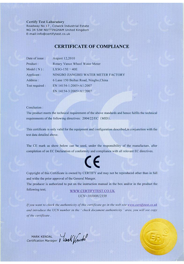 水表CE證書